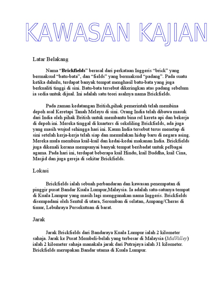 Kawasan Kajian Brickfields from imgv2-2-f.scribdassets.com Contoh latar belakang penulisan makalah. Berdasarkan data tersebut sekitar 60% lahan merupakan kawasan perkebunan dan kehutanan yang. Karena kita hidup di kawasan asia tenggara maka sebaiknya kita tahu latar belakang berdirinya asean yang merupakan salah satu organisasi yang penting untuk kawasan asia tenggara. Langsung saja yuk simak ulasan lengkap quipper blog mengenai. Kini keluasan kawasan pentadbiran majlis perbandaran sepang meliputi keseluruhan kawasan daerah sepang iaitu seluas 56,150 hektar ( jumlah keluasan yang dinyatakan tidak termasuk kawasan 3 batu nautikal dari tikas air surut ). Seksyen 5 asalnya sebuah ladang matang kediaman pet. Kumpul 50 artikel berkaitan 3. Antaranya ialah mandi langir, berubat dengan dukun dan jampi mantera, tawar halaman, petua berburu, membersihkan kubur di bulan shaaban dan telah membina satu set soal selidik yang merangkumi lima bahagian iaitu bahagian a: