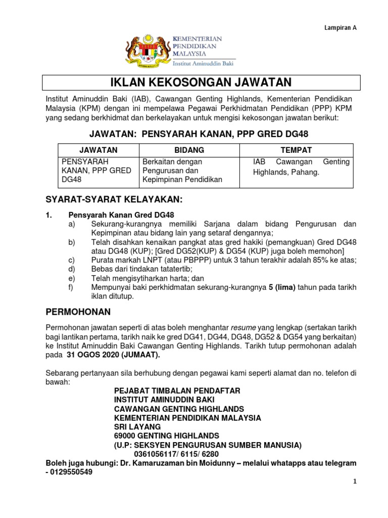 Maybe you would like to learn more about one of these? Institut aminuddin baki jawatan kosong. We did not find results for: Check spelling or type a new query.